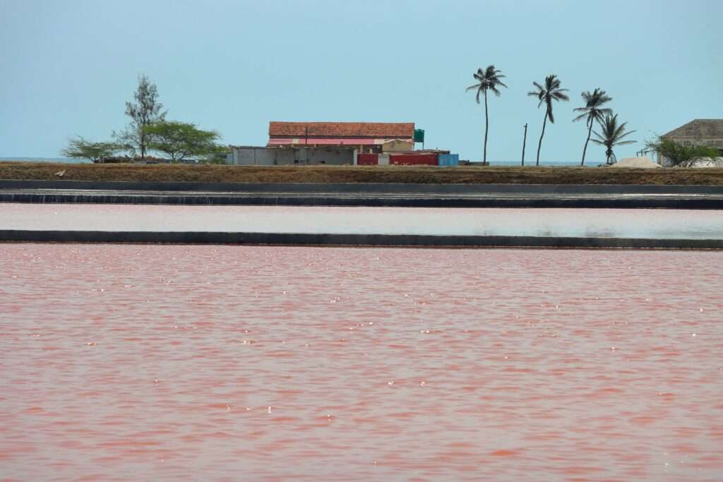 Avant de regagner notre lodge, nous faisons un dernier arrêt aux salines. Sous le soleil de l’après-midi, les bassins prennent une teinte rose éclatante. Les cristaux de sel scintillent à la surface de l’eau peu profonde, et le paysage devient presque irréel : un damier rose et blanc bordé de palmiers et de collines rousses. Des ouvriers y récoltent le sel à la main, amoncelant de petits cônes brillants qui sèchent lentement au vent. Le spectacle est hypnotique, presque silencieux, seulement ponctué par le cri lointain des mouettes.