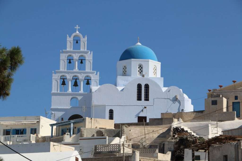 Plus haut encore, nous atteignons le monastère de Profitis Ilias, fondé au début du XVIIIᵉ siècle. Construit comme une forteresse spirituelle, il servit de centre éducatif, religieux et stratégique. Ses murs épais, ses cellules austères et sa cour centrale évoquent les temps où la foi et la défense se mêlaient. Le monastère abrita des manuscrits, forma des moines lettrés, et servit de refuge pendant les troubles. Aujourd’hui, il offre une vue panoramique sur la caldeira, les plages et les villages intérieurs — une lecture à ciel ouvert de la géographie sacrée de Santorin.