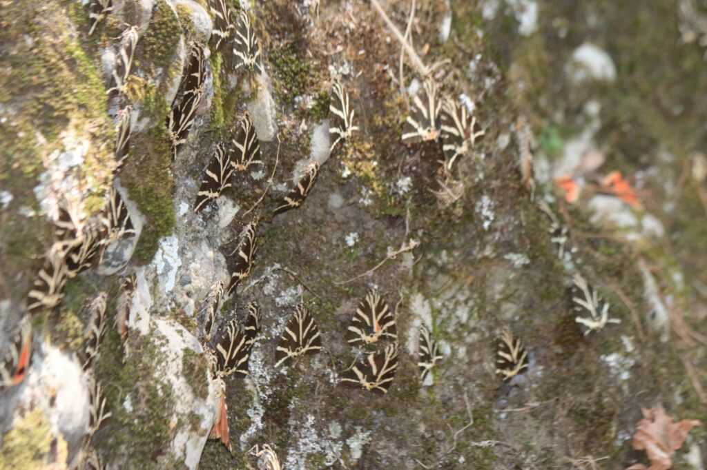 Après tant de pierre, nous cherchons la fraîcheur des espaces naturels. Dans la Vallée des Papillons (Petaloudes), le sentier boisé longe un ruisseau chantant. Sous les frondaisons, des milliers de papillons jaunes (Callimorpha quadripunctaria) s’accrochent aux troncs de sycomores, attirés par la sève des arbres endémiques.