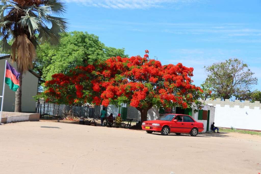 La route d’Oshikango à Oshakati déroule son ruban rectiligne à travers villages animés, stations-service modernes et marchés où s’amoncellent fruits, légumes, sacs de farine de maïs et courges butternut.