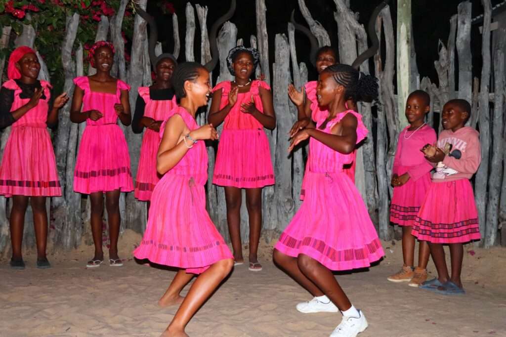 Pour notre dernière soirée à Okapika, alors que le ciel s’assombrissait doucement au-dessus des collines, les employés du lodge nous ont offert une animation dansante aussi joyeuse qu’inattendue. Dans la cour sablonneuse, éclairée par quelques lampes suspendues et la lueur des étoiles, les enfants du personnel ont rejoint les adultes pour une performance pleine de vie et de spontanéité.