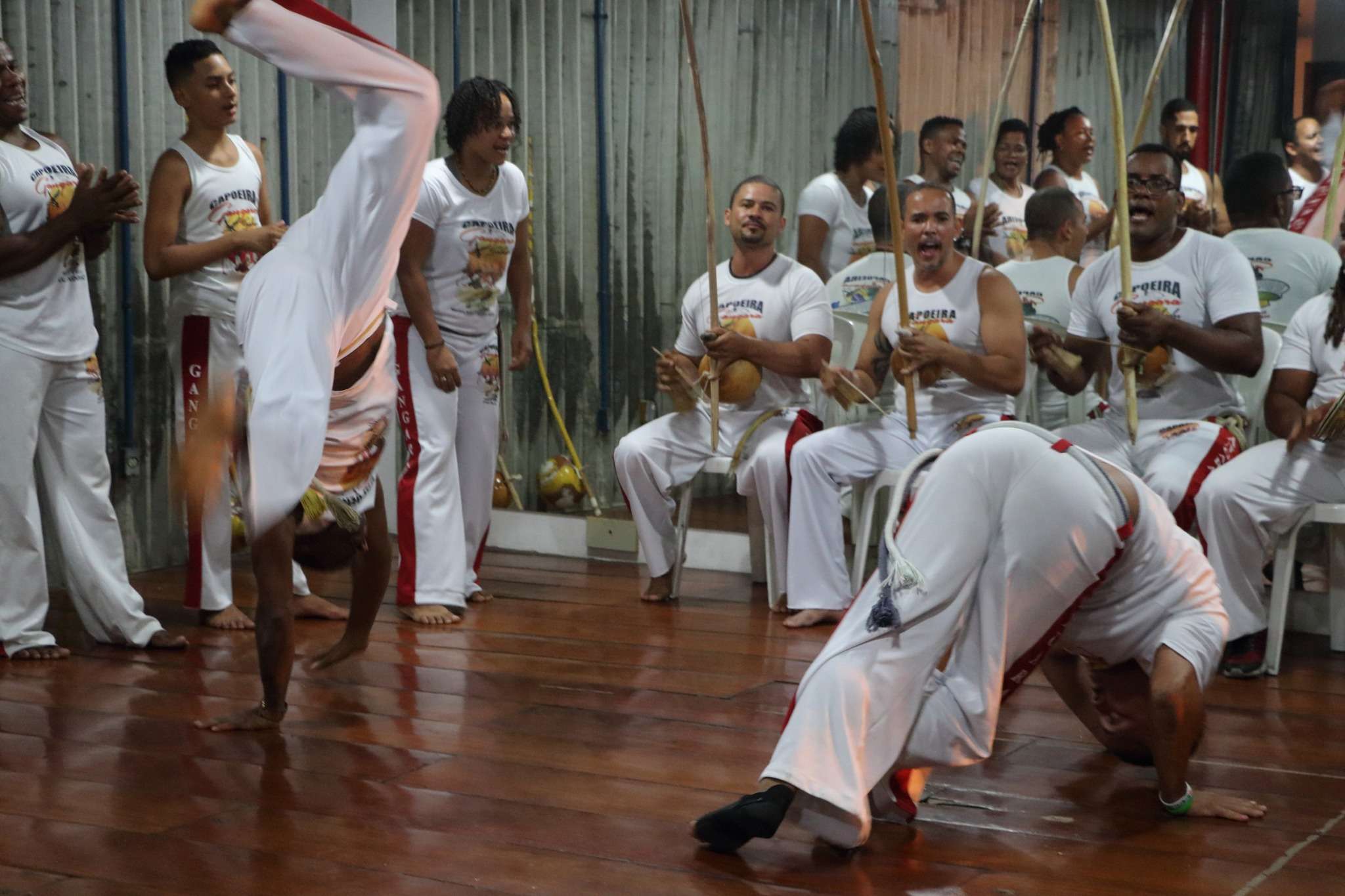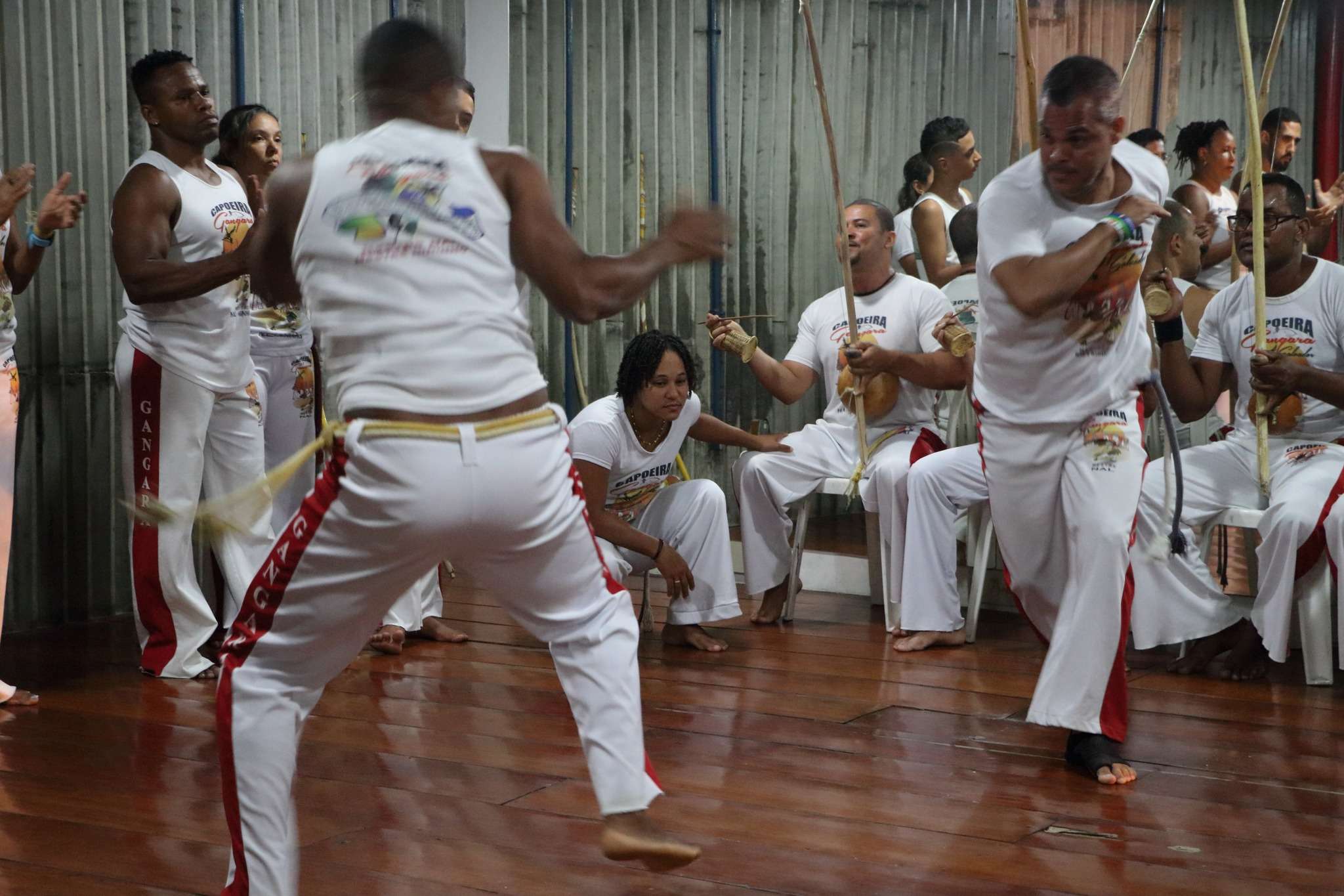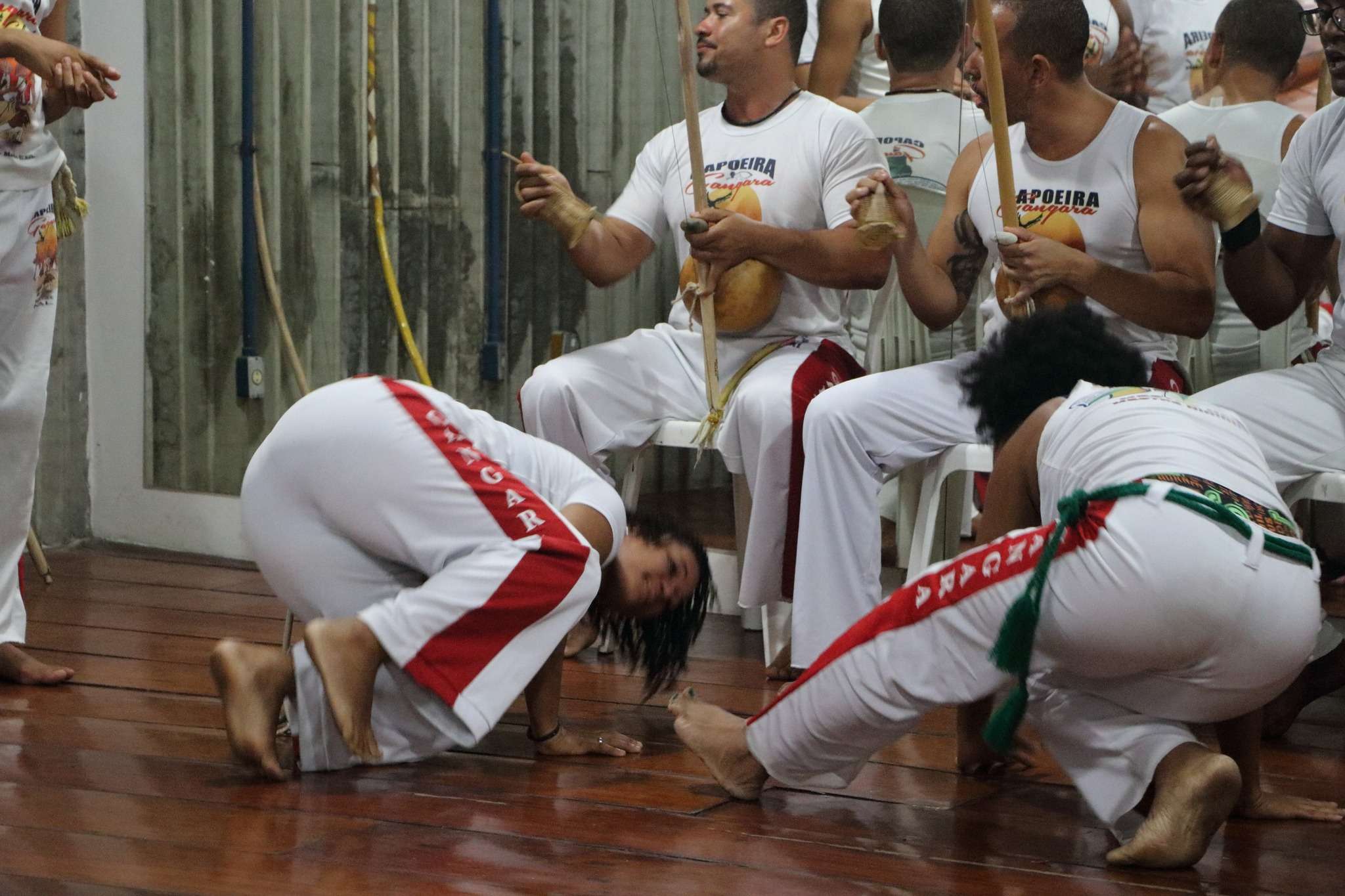 Les capoeiristes entrent dans la roda deux par deux. Ils se saluent, se regardent, se jaugent… puis commencent à jouer. Leurs mouvements sont fluides, félins, parfois explosifs, parfois suspendus. On y lit l’histoire du Brésil : la résistance des esclaves, la ruse, la liberté conquise par le corps quand les mots étaient interdits. C’est beau, puissant, presque chorégraphique — et pourtant, tout est improvisé, comme une conversation sans paroles.