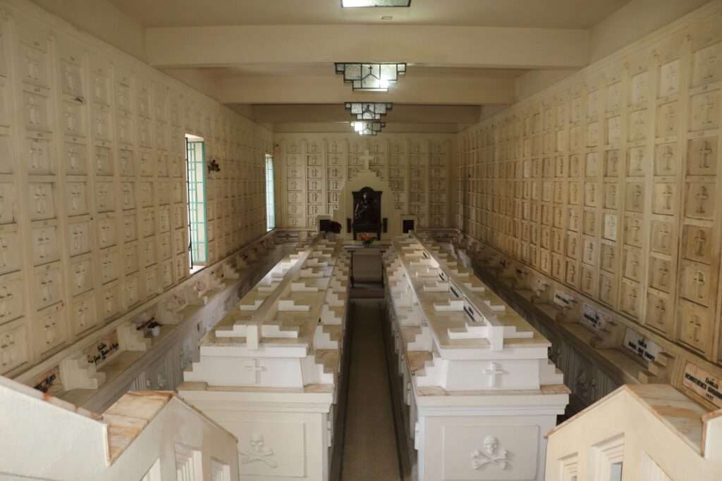 La Catedral Basílica, joyau central de la place, est entièrement construite en pierre de Lioz importée du Portugal, matériau noble qui affirme immédiatement l’autorité et la permanence du pouvoir jésuite. L’intérieur, d’un maniérisme rigoureux, contraste avec l’exubérance baroque que nous avons rencontrée ailleurs dans le centre historique. Les lignes droites, les proportions strictes et l’austérité calculée du décor servent un objectif clair : canaliser l’esprit du fidèle vers la contemplation et la discipline, une lecture presque architecturale de la foi.
