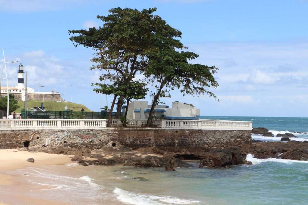 Autour de nous, les fortifications racontent la mémoire coloniale : trois forts portugais du XVIIᵉ siècle — dont le Fort Santo Antônio da Barra, qui abrite le célèbre Farol da Barra et le Musée Nautique — ponctuent l’horizon et rappellent la vocation défensive et maritime du lieu. C’est ici, sur ce rivage, que la fondation officielle de Salvador a été célébrée au XVIᵉ siècle ; un marqueur commémoratif signale la naissance de la ville et donne au site une densité historique palpable.
