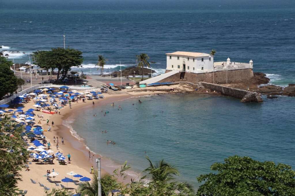 La Praia do Porto da Barra, juste à côté de l’Igreja de Santo Antônio da Barra, est une plage urbaine emblématique de Salvador — orientée plein ouest, protégée par trois forts et idéale pour admirer le coucher de soleil et la baignade en eaux calmes.