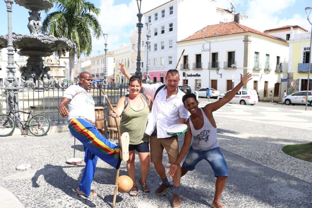 L’après‑midi se poursuit sous le soleil de Salvador, et après les langoustes du Portal do Mar, nous changeons totalement d’univers : direction une école de Capoeira, l’une de ces académies où résonnent les berimbaus, où les corps virevoltent, et où l’âme afro‑brésilienne bat à plein rythme.