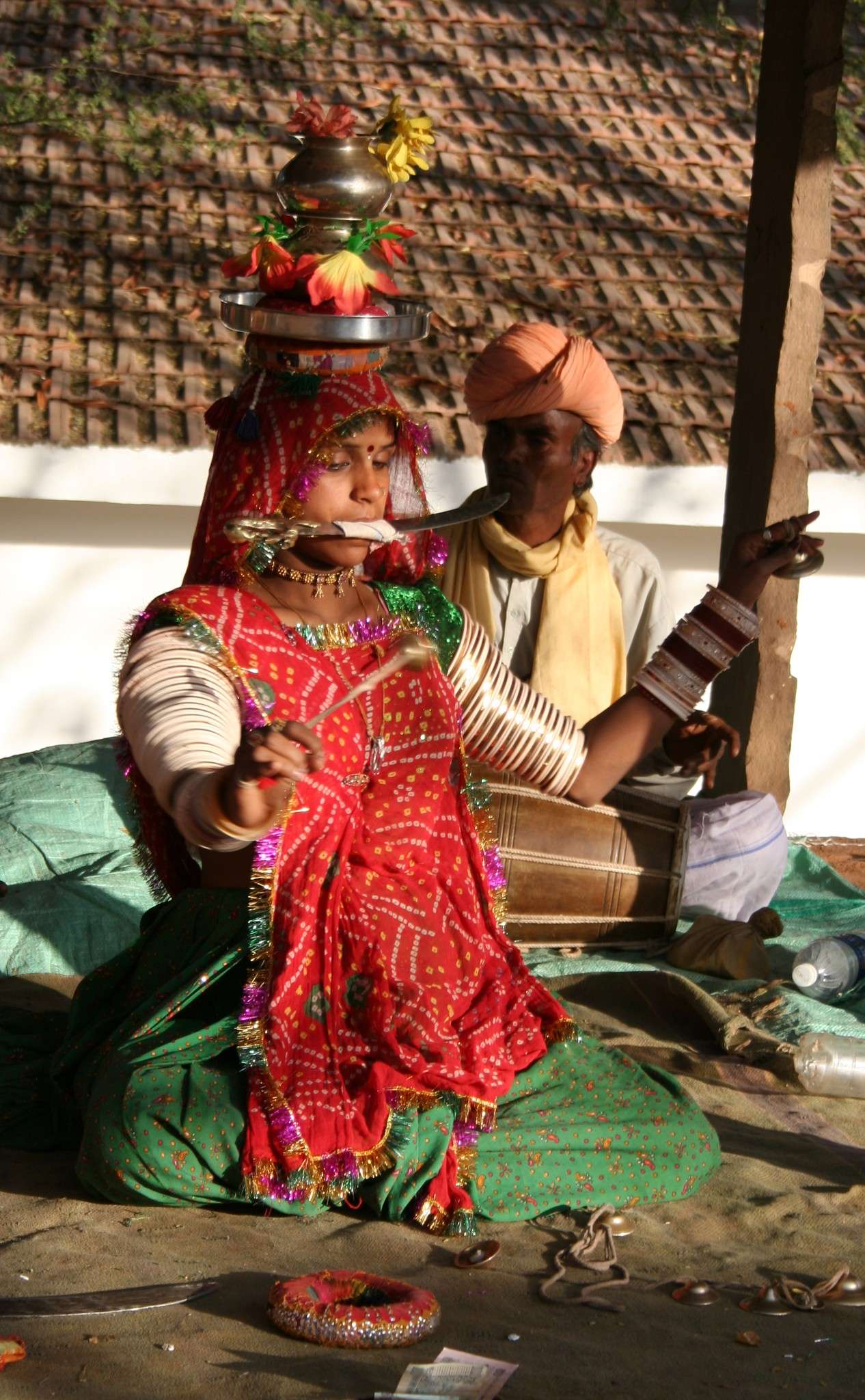 Dans un espace plus dégagé, un immense amphithéâtre en plein air s’élève, capable d’accueillir jusqu’à 8 000 personnes. Nous y assistons à un spectacle de danses folkloriques rajasthanies, avec leurs saris éclatants, leurs bracelets qui tintent, leurs mouvements souples et aériens. Des musiciens accompagnent ces ballets avec des instruments traditionnels : le sarangi, le dholak, la flûte.