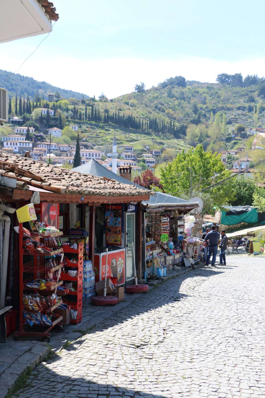 En prenant un peu de hauteur, nous découvrons les alentours du village : des collines couvertes de vignes et d’oliviers, ponctuées de sentiers qui invitent à la marche. La géographie de Şirince explique en partie son caractère préservé : éloigné des grandes voies de circulation, protégé par son relief, le village a échappé aux transformations brutales qui ont touché d’autres régions. Le paysage, façonné par des siècles d’agriculture en terrasses, raconte un dialogue ancien entre l’homme et la terre.