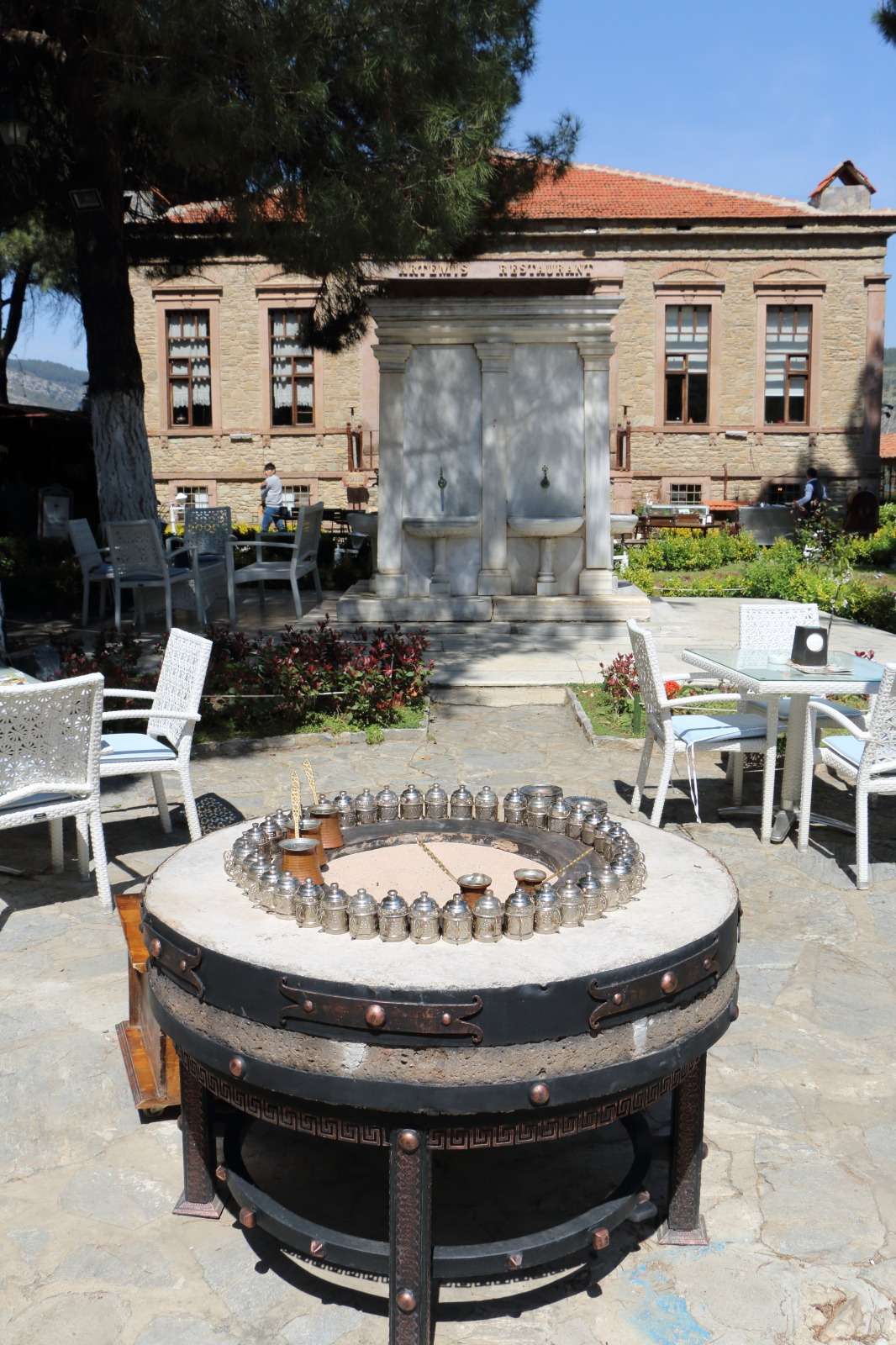À Şirince, après les ruelles pavées et les échoppes de confitures, nous nous installons pour le déjeuner à l’Artemis Restaurant & Şarapevi, niché dans une ancienne bâtisse de pierre face aux collines. L’ambiance est à la fois rustique et raffinée, avec ses tables en bois sous les treilles, ses fontaines de pierre, et son panorama sur les toits rouges du village. Ici, le vin local coule doucement dans les verres, et les plats célèbrent la générosité de l’Anatolie égéenne.