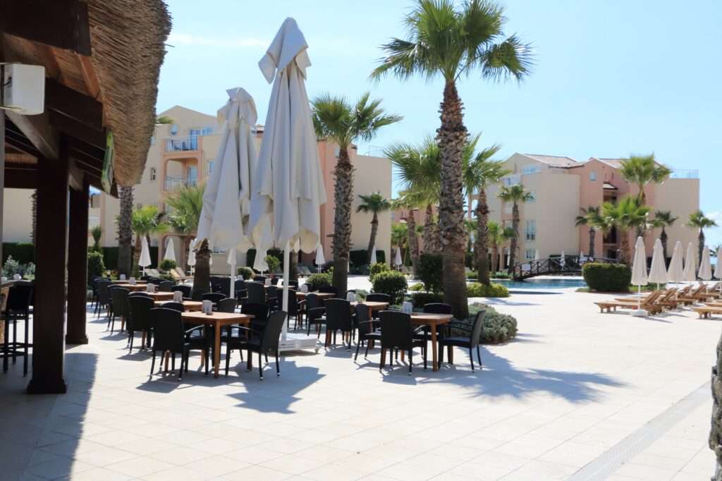 Après les routes sinueuses et les paysages côtiers, nous arrivons enfin à Kuşadası, perle de la mer Égée. Le soleil est déjà haut, les palmiers ondulent doucement, et l’air sent le sel et les pins. Notre halte se fait au Kusadasi Golf & Spa Resort, vaste complexe niché sur les hauteurs, entre collines verdoyantes et vues plongeantes sur la mer.