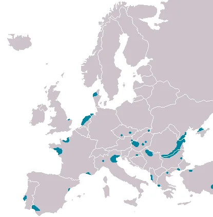 En Europe de l’Ouest, elle se reproduit en Espagne, en France, en Belgique et aux Pays-Bas. En Europe orientale, elle fréquente la réserve naturelle d’Astrakhan qui fait partie du delta de la Volga.