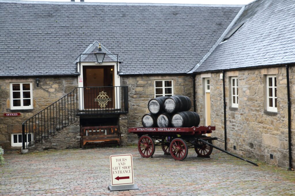 Après les grandes signatures du Speyside, notre périple malté s’achève dans un lieu qui semble suspendu dans le temps. Strathisla n’est pas seulement une distillerie : c’est une mémoire vivante du whisky écossais, enveloppée dans son plus ancien manteau de pierre. Fondée en 1786, elle est généralement considérée comme la doyenne encore en activité du Speyside. À l’écart des routes les plus fréquentées, elle se révèle au détour d’une allée bordée d’arbres, avec ses bâtiments de pierre blonde, ses pagodes élancées et sa cour pavée qui évoque davantage un ancien prieuré qu’un site de production.