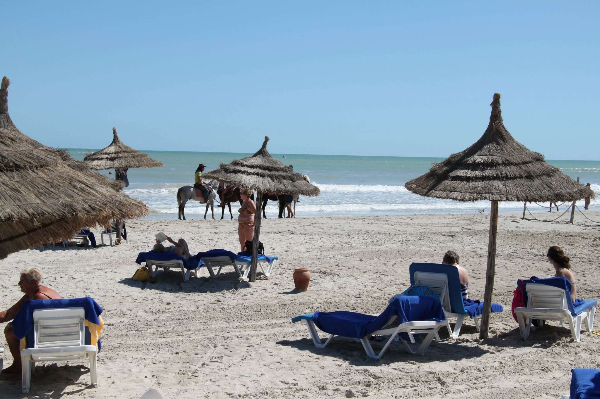 Rapidement, nous partons explorer les lieux. La grande piscine, bordée de transats et de palmiers, semble nous tendre les bras. Mais c’est du côté de la plage privée, à deux pas, que nous nous dirigeons. Le sable est doux, presque blanc, et la Méditerranée nous offre ses reflets turquoise. Quelques pêcheurs au loin, des dromadaires nonchalamment installés sous les tamaris, et le doux clapotis des vagues… Nous y sommes. Les vacances peuvent commencer.