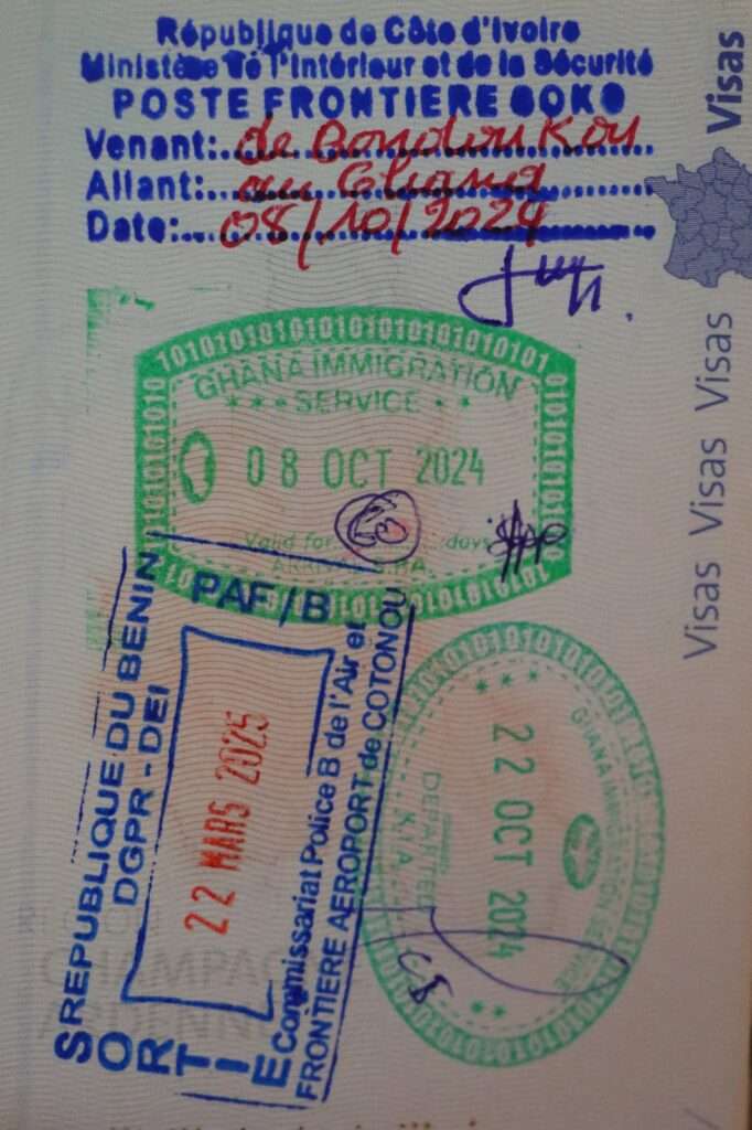 Un seul imprévu : lors du contrôle sanitaire, notre carnet de vaccination ne mentionnait pas la méningite, pourtant vaccin obligatoire en France et valable à vie. L’agent nous a proposé deux options absurdes : aller nous faire vacciner à l’« hôpital de la frontière »… ou céder à un petit arrangement. Finalement, nous avons choisi la seconde solution : 20 000 FCFA pour passer sans encombre. Une dépense regrettable, mais bien préférable à des heures perdues.