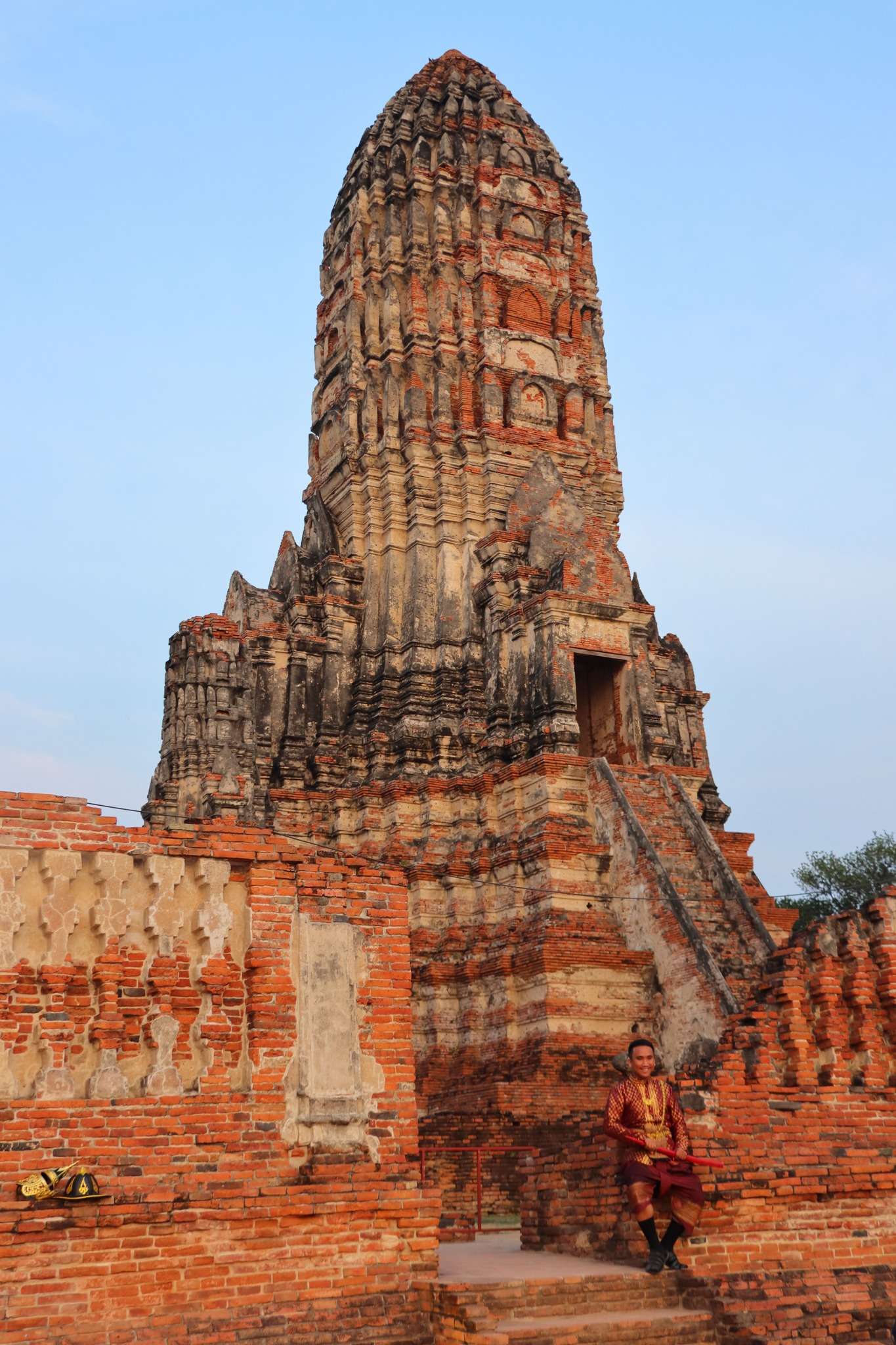 Le cœur du site est son prang central, haut de 35 mètres, directement inspiré des temples‑montagnes khmers. Cette structure symbolise le Mont Meru, centre de l’univers dans la cosmologie bouddhiste et hindoue. Les étages superposés, les escaliers abrupts, les niches destinées aux statues de Bouddha et les proportions élancées rappellent Angkor Wat et les grands sanctuaires de l’empire khmer. Mais les artisans siamois ont adapté ce modèle à leur propre sensibilité : les lignes sont plus douces, les stucs plus floraux, les galeries plus aérées. L’ensemble respire une harmonie sereine, moins guerrière que ses modèles cambodgiens, plus tournée vers la méditation et la narration.