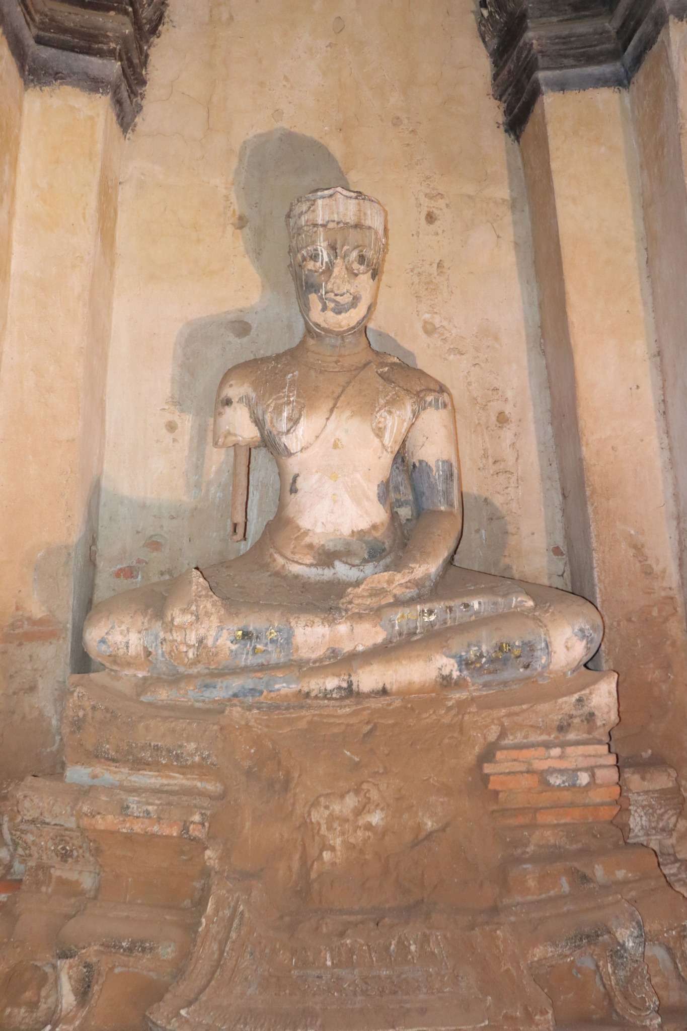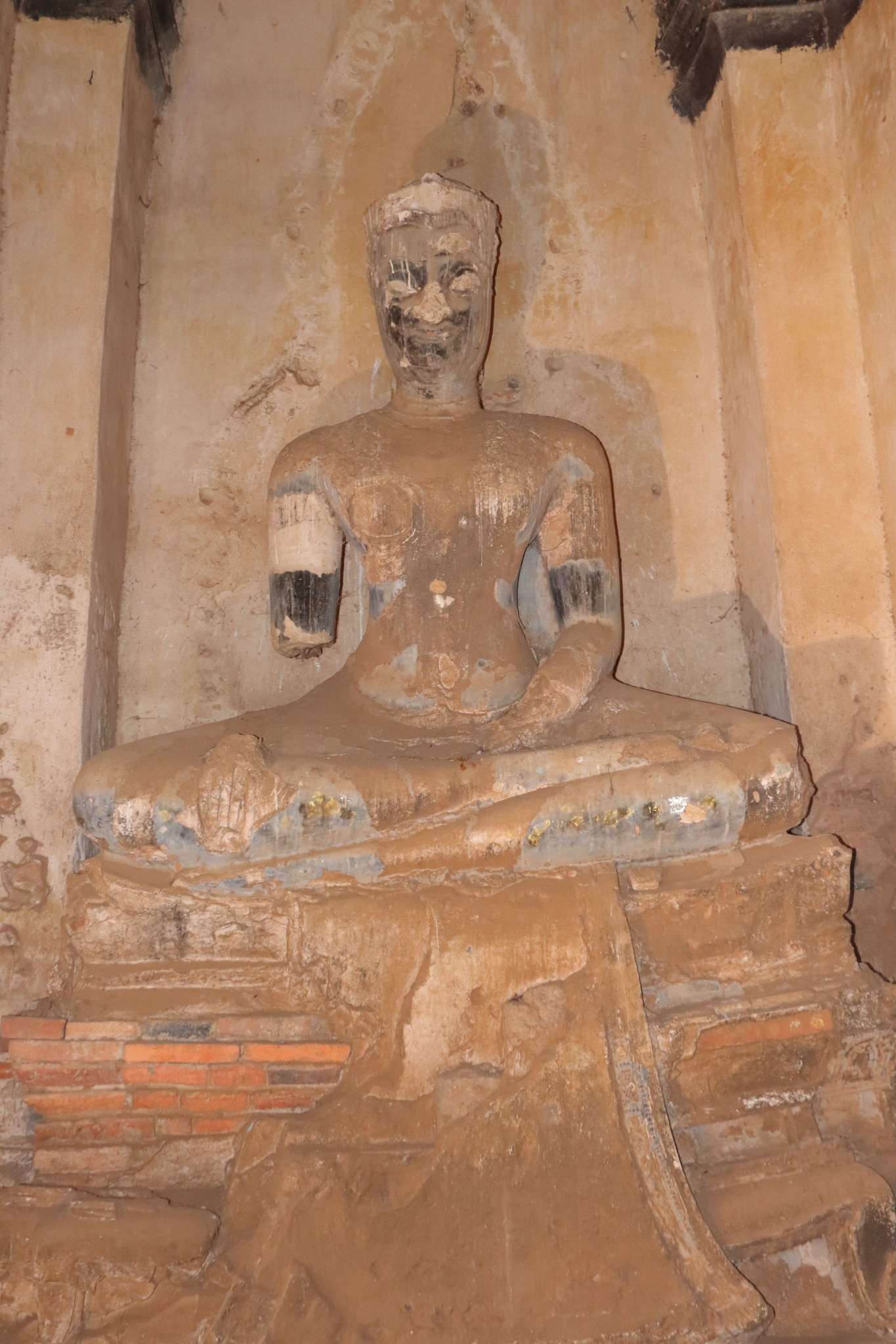 Dans les niches du prang et des chedis, des statues de Bouddha étaient installées dans différentes attitudes : méditation, apaisement, enseignement. Beaucoup furent décapitées lors des invasions birmanes, mais leurs silhouettes demeurent, poignantes, comme des fantômes de pierre rappelant la fragilité de toute civilisation.