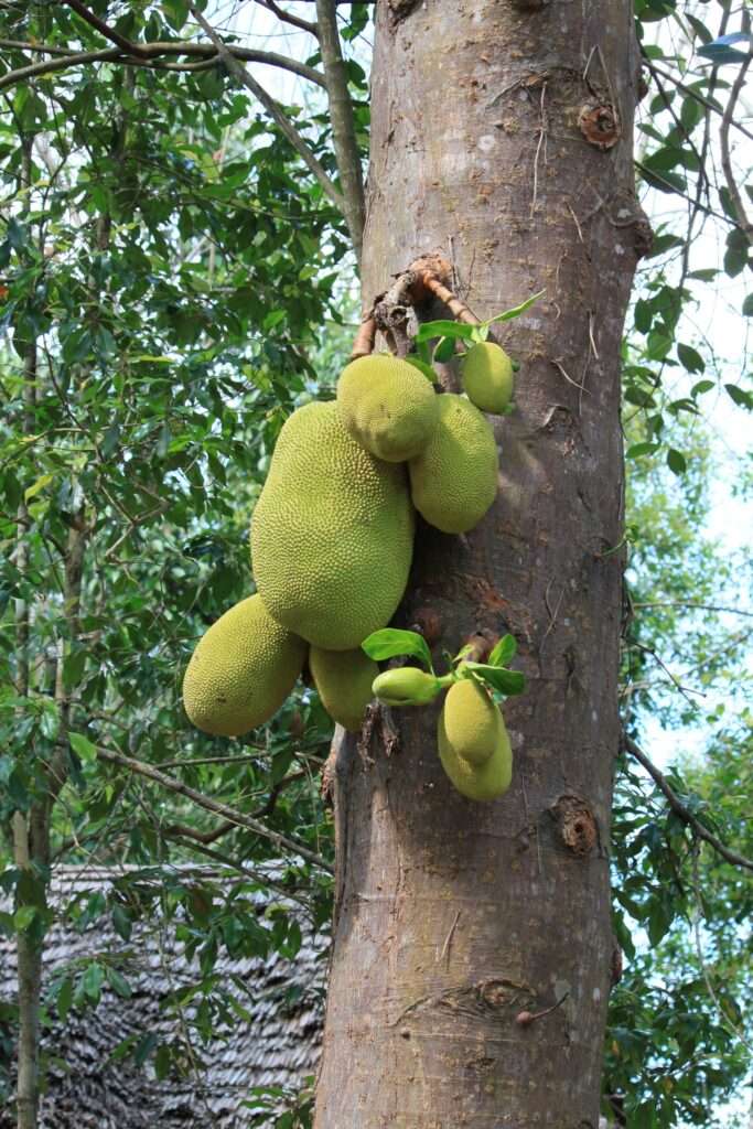 À la fin du parcours, un petit stand ombragé nous attend. Sur une table, sont alignés des paniers d’épices, de savons, d’huiles essentielles et de fruits exotiques : ananas, fruit de la passion, jacquier, mangue, orange amère, canne à sucre… Le goût sucré du jus de coco fraîchement coupé nous désaltère, tandis que les villageois entonnent quelques chansons locales. L’ambiance est simple, joyeuse, sincère.