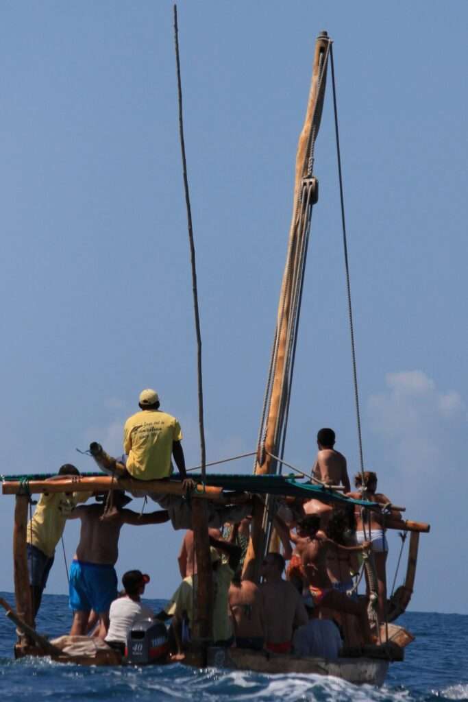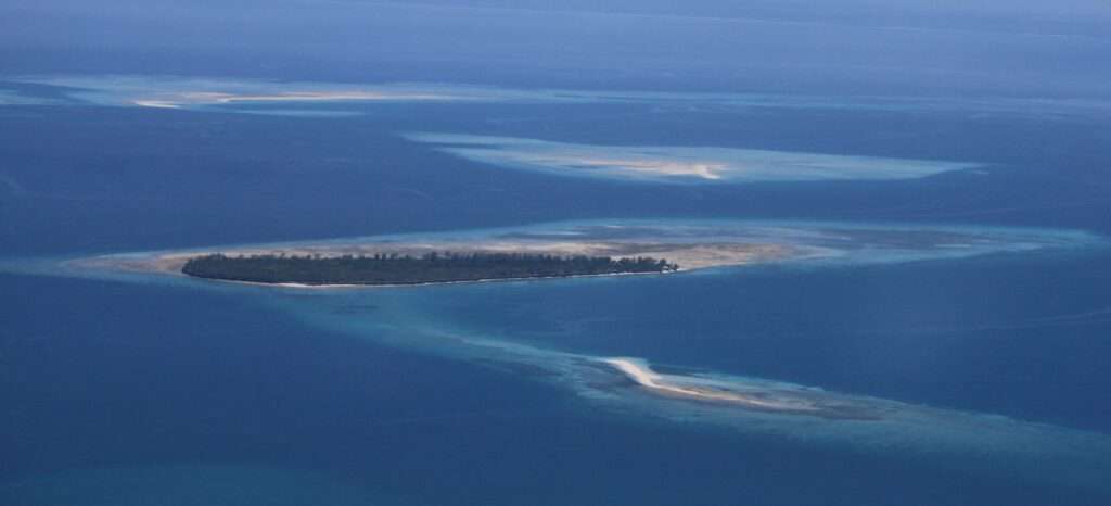 Sur la plage, l’embarcation nous attend, sa voile triangulaire prête à se gonfler sous la brise. Nous montons à bord, rejoints par une vingtaine d’autres voyageurs. Le bateau glisse doucement, son moteur auxiliaire ronronnant à peine, avant que le silence du vent ne prenne le relais. La journée s’annonce longue et belle : six à sept heures d’immersion dans un archipel d’îlots, de lagons et de récifs coralliens, là où l’océan Indien déploie mille nuances de bleu.