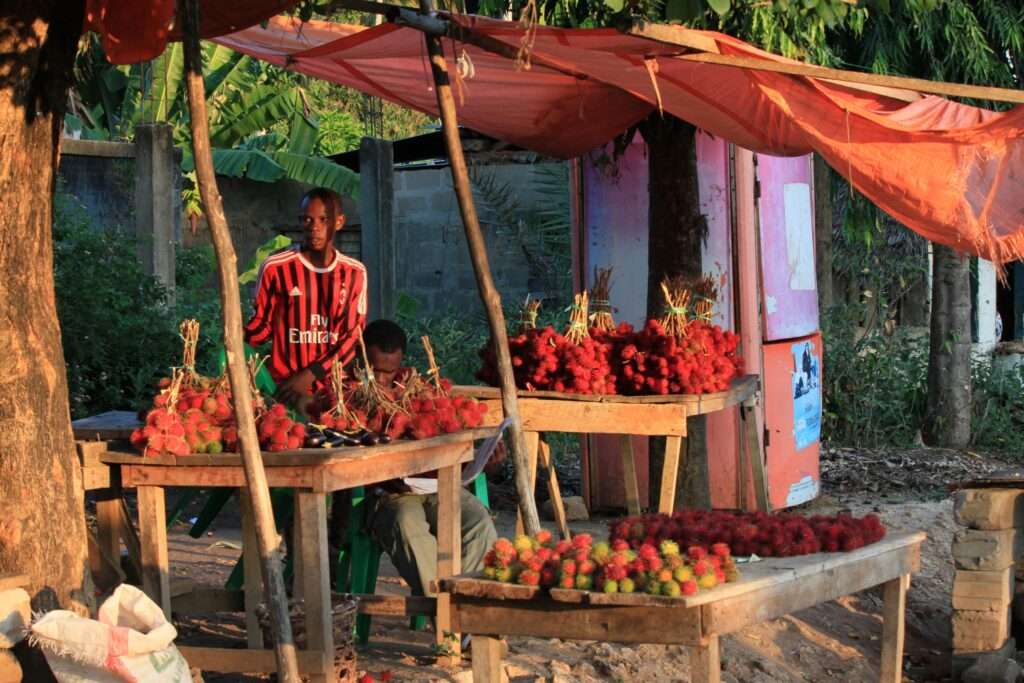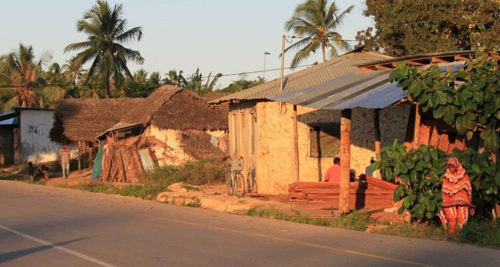 Ce matin, nous quittons la côte pour remonter vers l’intérieur des terres, là où bat encore le cœur agricole de Zanzibar. La route s’enfonce à travers une campagne paisible, ponctuée de palmiers élancés et de cases colorées. Dans les villages que nous traversons, la vie s’éveille doucement : des enfants marchent vers l’école en uniforme, les femmes étendent le linge dans les cours sablonneuses, et les hommes, souvent à moto, transportent des paniers de fruits, des bidons d’eau ou des fagots de bois. À mesure que nous quittons la mer, l’air devient plus dense, plus humide — une promesse d’arômes à venir.